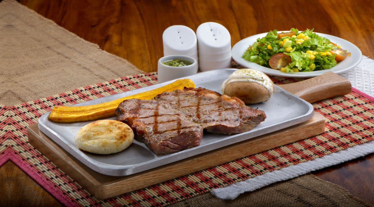 Prato de peixe e carne Acompanhamentos: arroz branco e batata frita