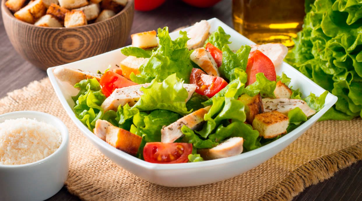 Alface, tomate, pepino, cebola, azeitonas e mozzarella.