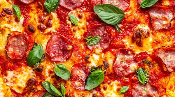 Salam de porc, mozzarella, masline, ciuperci, ardei kapia, blat pizza - 480g