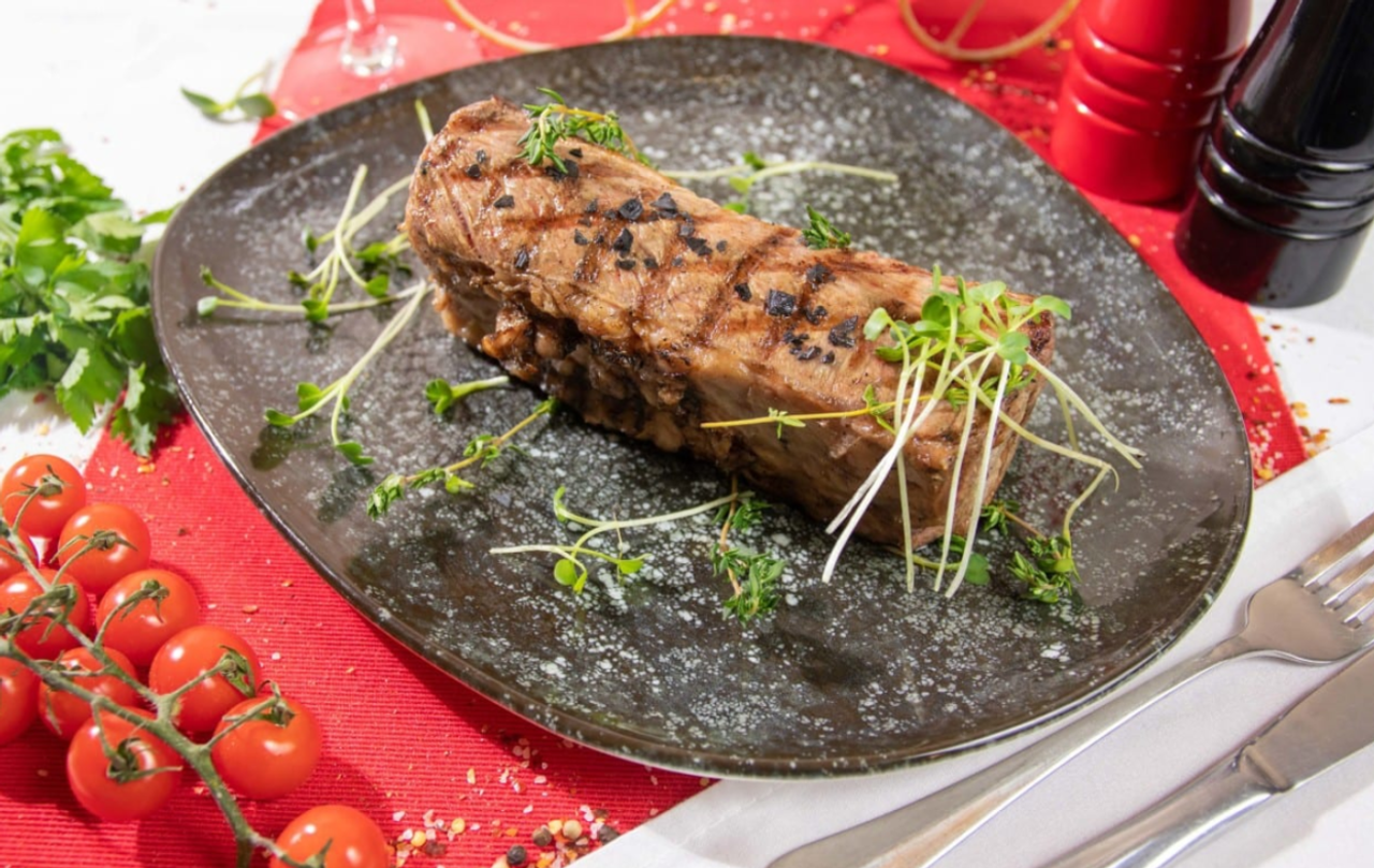 Muschi de vita, mozzarella, ulei de masline, ardei gras rosu, piper alb macinat, sare de mare - 300g