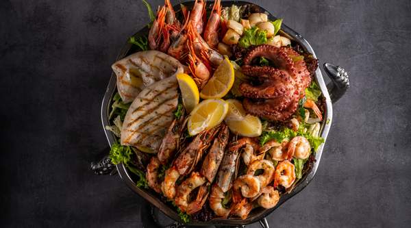 Creveți calamar tentacul de calamar scoici carne scoici St. Jacques unt usturoi pita cipriotă - 1300g Pentru 4 persoane