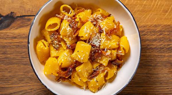 Pasta ta proaspata preferata, guanciale, gălbenuș de ou, pecorino romano, piper - 350 gRecomandam sa alegi spaghetti sau rigatoni.