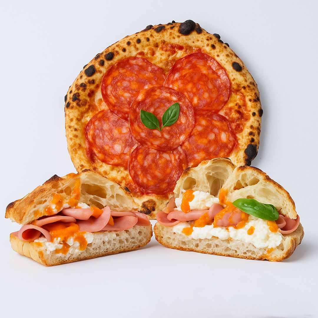 Două pizza delicioase, perfecte de împărțit sau de savurat solo. Aluat dospit lent, ingrediente fresh și gust garantat.