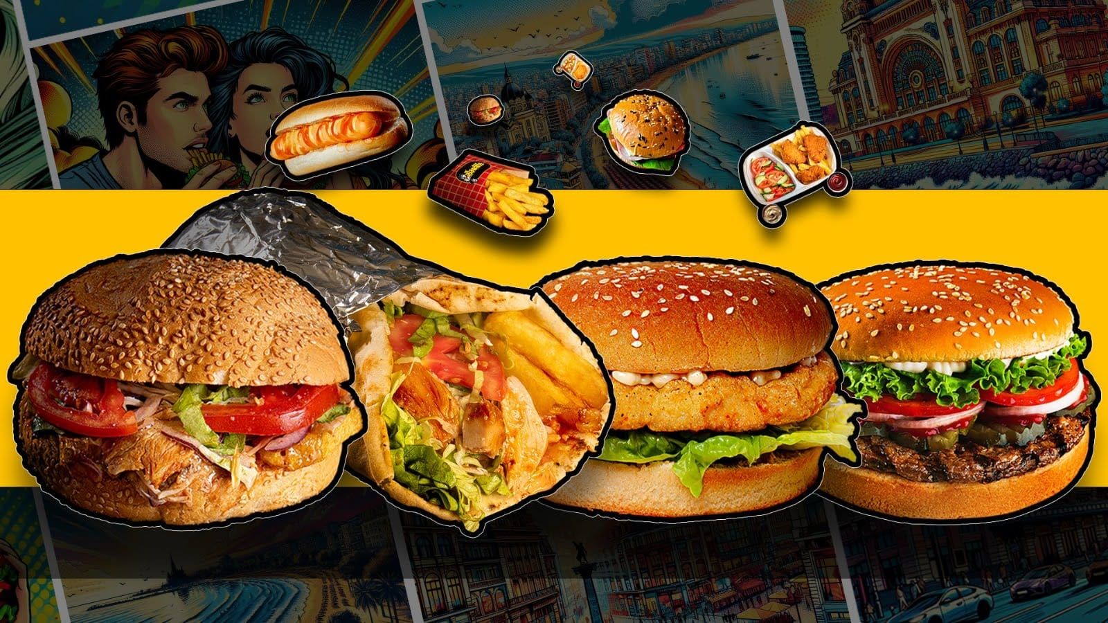 Piept pui, cartofi, sosuri (ketchup dulce sau picant, chilli, maioneza cu usturoi sau simpla, tzatziki), castraveti proaspeti si murati, ceapa roșie, rosii, varza, salata verde - 500g