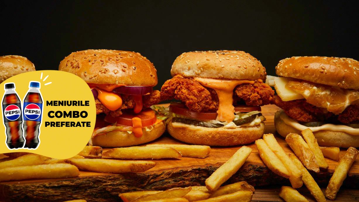 Alegeți burgerii preferati alaturi de o garnitura si un sos. (Gramajul unui combo este intre 500 Grame/ 750 Grame)