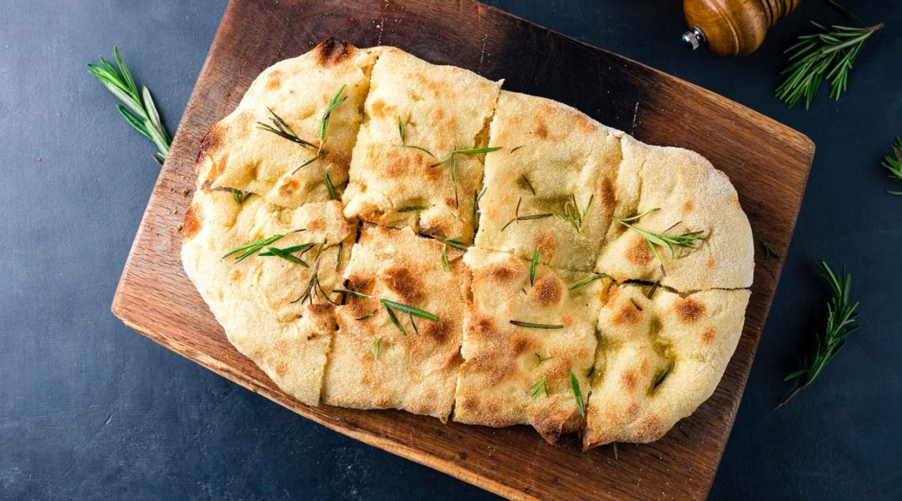 Focaccia, mortadella, cremă de trufe, roșii uscate, fistic, rucola – 500g