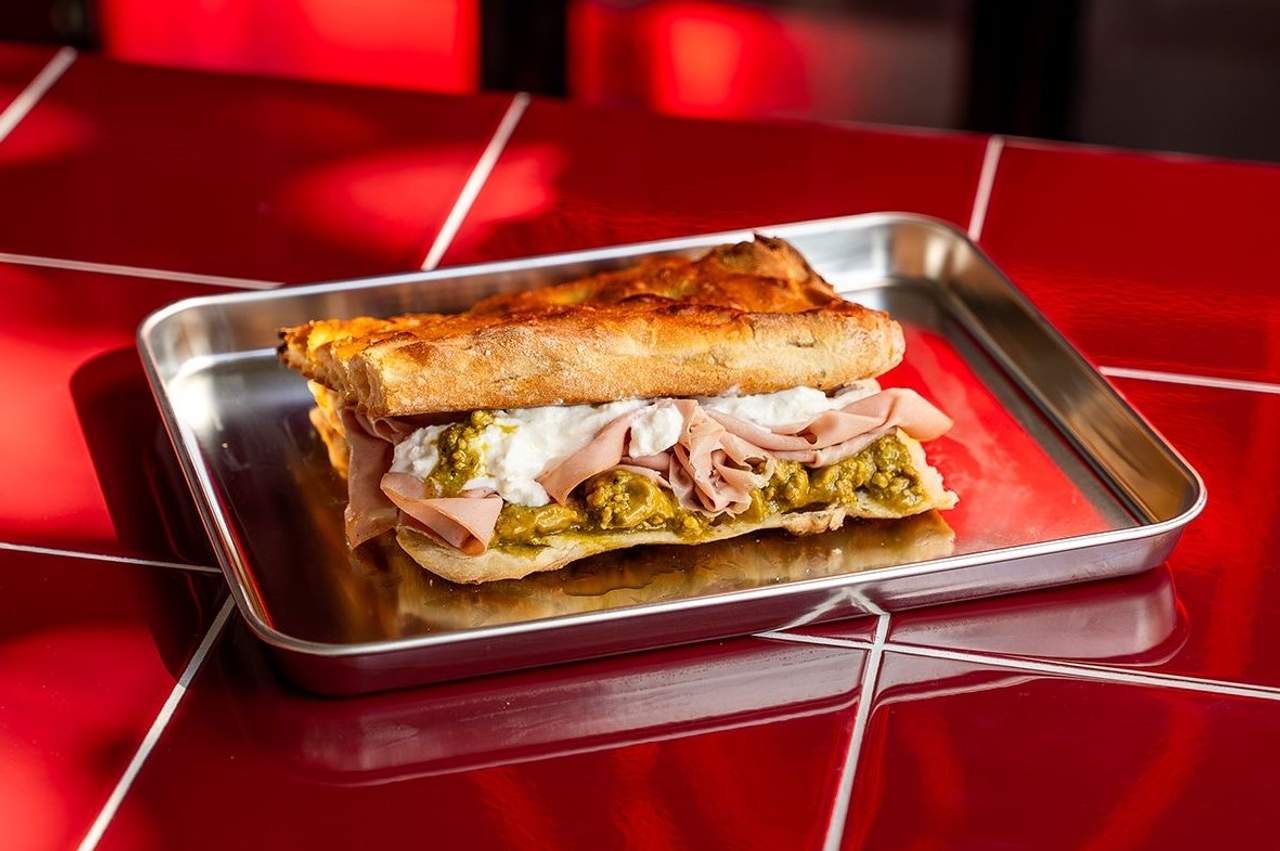 Schiacciata, mortadella, stracciatella, cremă de fistic și fistic mărunțit - 345g
