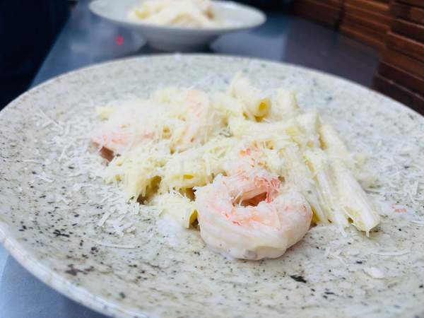Creveti, sos cremos cu usturoi si cascaval - 300g