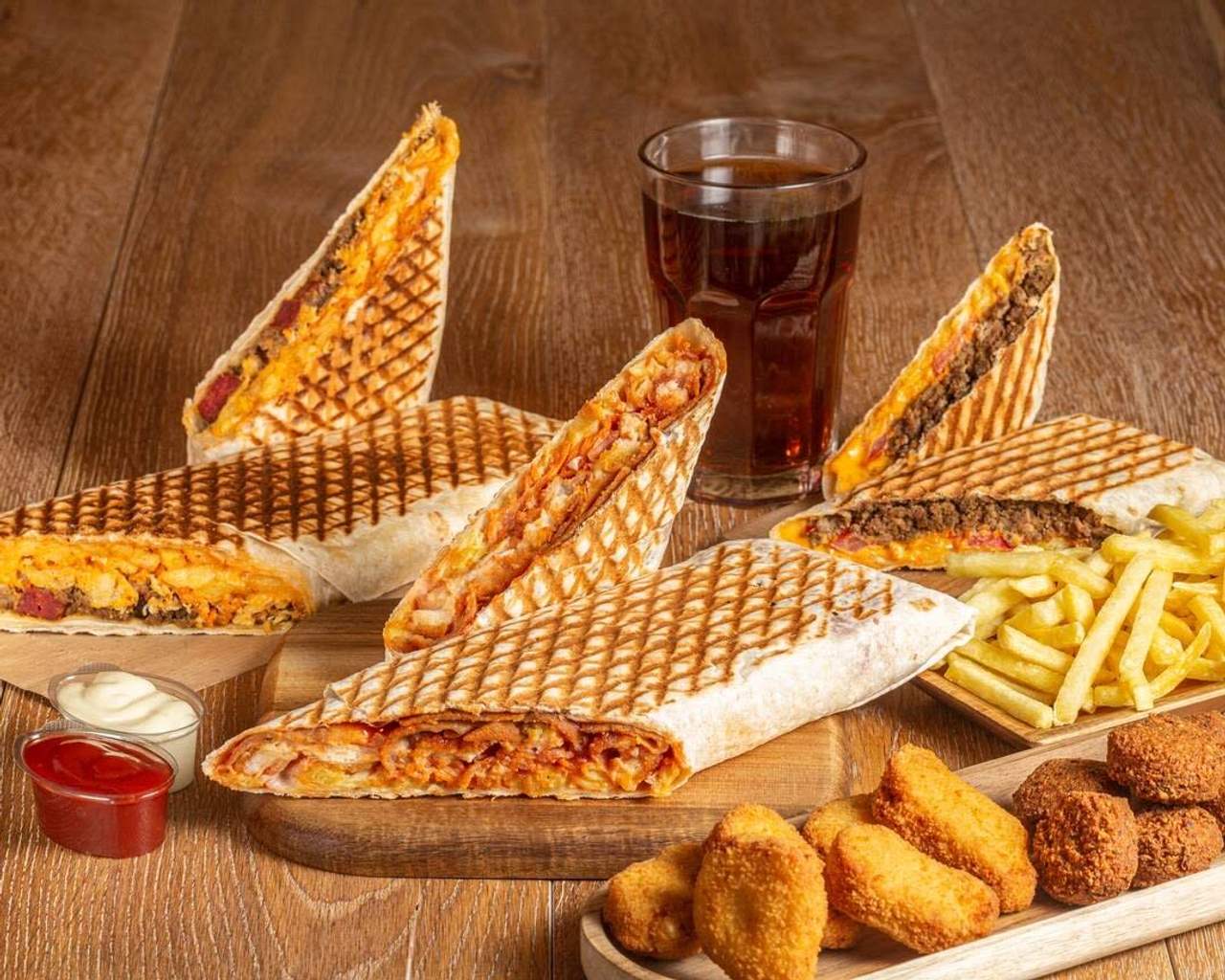 Taco all-natural cu mozzarella, doua sortimente de carne la alegere, sosuri la alegere, cartofi prajiti proaspeti, taiati manual, prajiti in ulei vegetal 100% nehidrogenat la interior plus o racoritoare la alegere, un sos la alegere separat, o portie mare de cartofi proaspeti taiati manual, toate incluse in pret! 900g