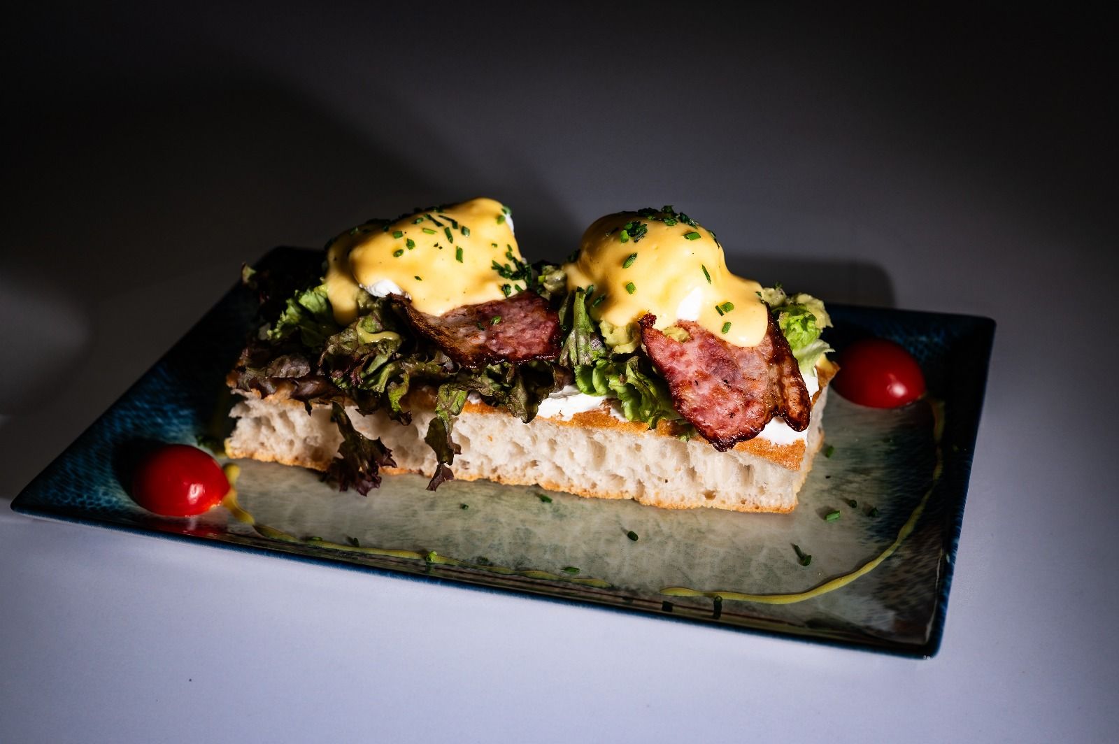 • Ouă poșate • Pâine • Bacon • Pastă de avocado • Cremă de brânză • Roșii cherry • Ceapă chivas • Ceapă roșie • Zeamă de lămâie • Sos olandez • Sare și piper 340g