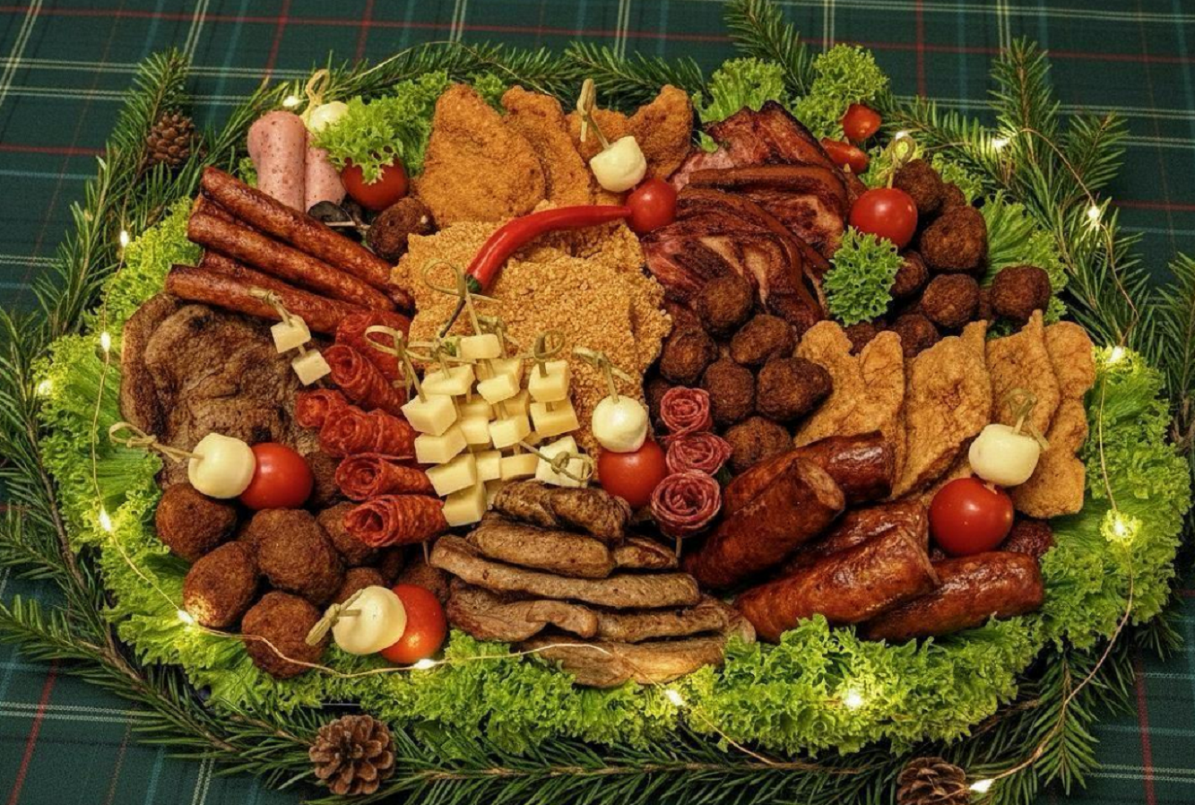 4 carnați afumați de casă, 3 cabanos, 4 mici, 2 ceafă, 2 piept de pui, cartofi prăjiți - 1.2kg