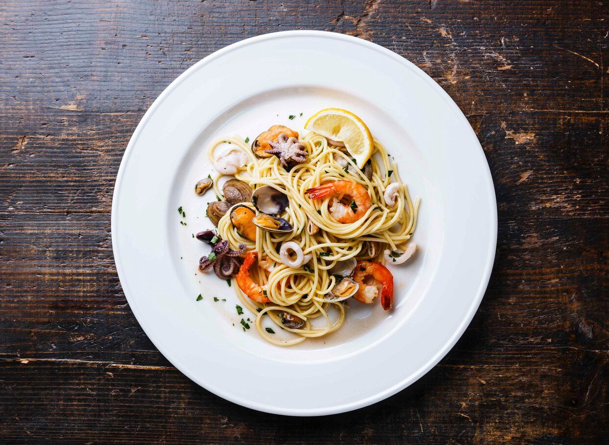 Spaghete cu fructe de mare și sos vin alb