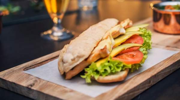 Pavlaka, grilovana piletina, kačkavalj, zelena salata, paradajz, kiseli krastavac