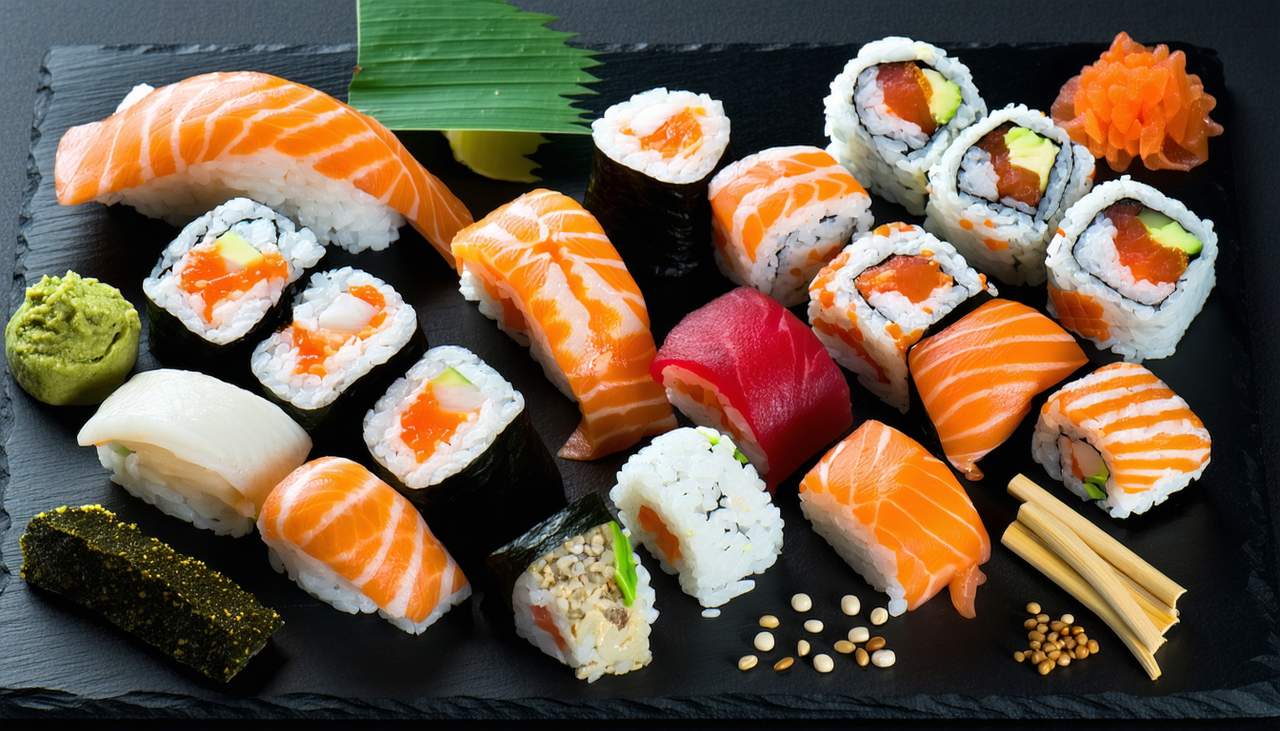 Nori, pirinač, losos, krastavac, avokado, krem sir, susam