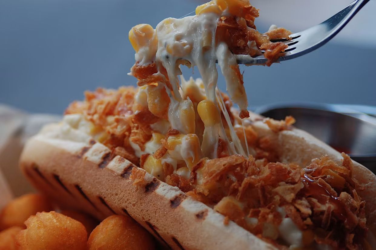 Кабаноси та сир косичка смажені у фритюрі. Подаються із сирним гострим соусом.