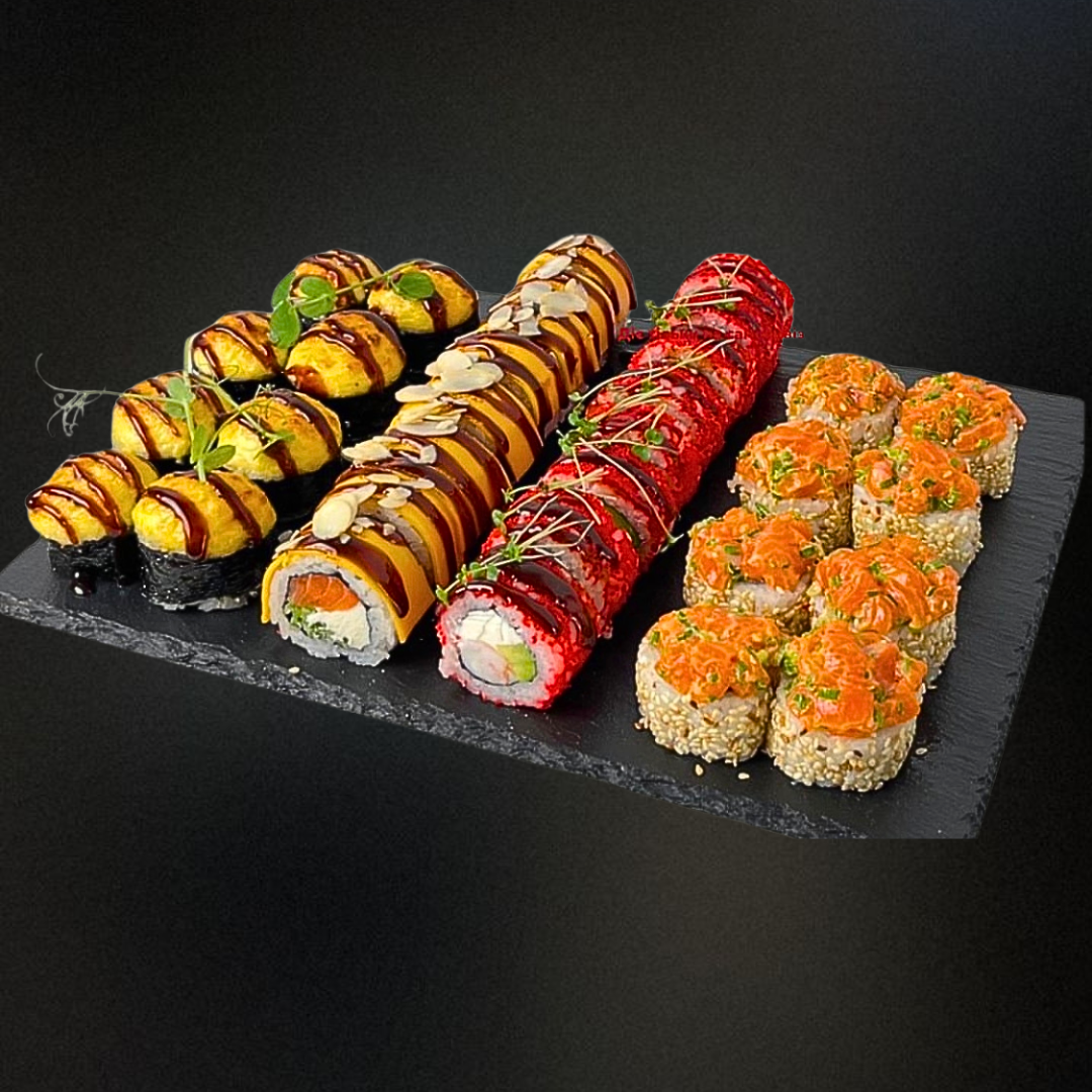 Філадельфія з лососем та тунцем — кремова насолода в норі. Каліфорнія з креветкою — свіжість морепродуктів. Запечений з лососем — ароматна гармонія смаків. Бургер з куркою — соковитий та ніжний, нагетси,цибулеві кільця та картопля,доповнять смак.