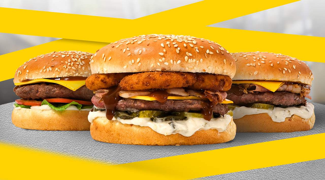 Булочка пшенична, котлета з яловичини, огірок солоний, кетчуп, цибуля, сир чеддер, соус барбекю.