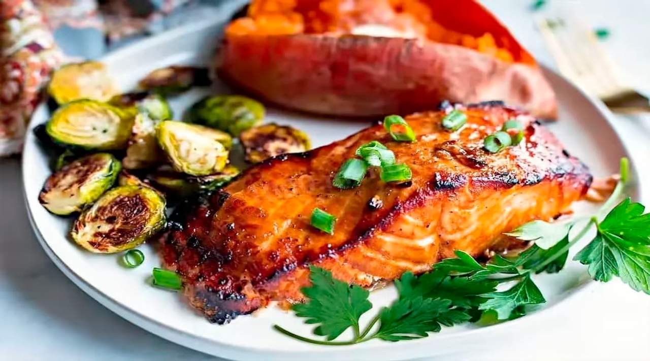 Подається з овочами гриль та медово-гірчичним соусом
