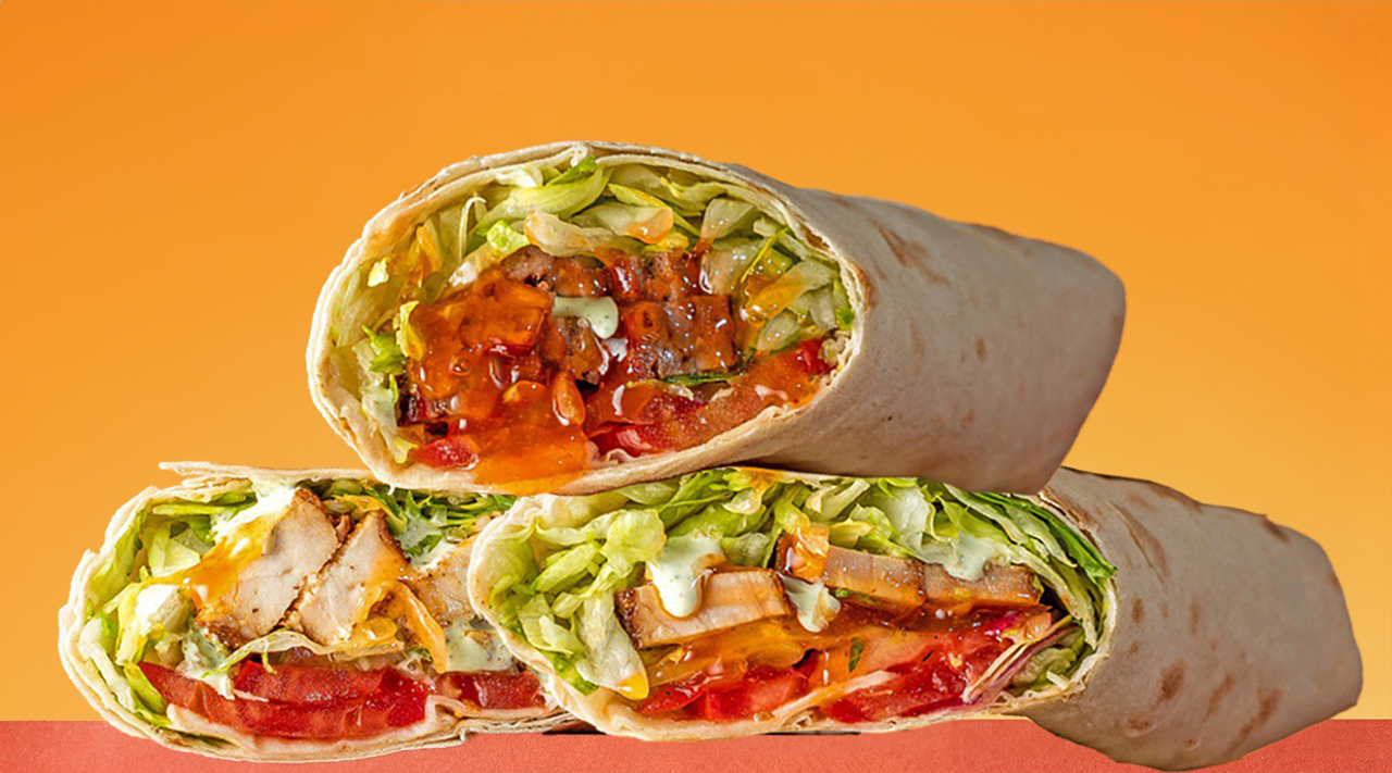 Хрумкий лаваш, салат айсберг, фірмовий соус, свіжі томати, мариновані огірки, червоний соус, гострий соус Шрирача, перець Халапеьйо та запечене м'ясо на вугіллі