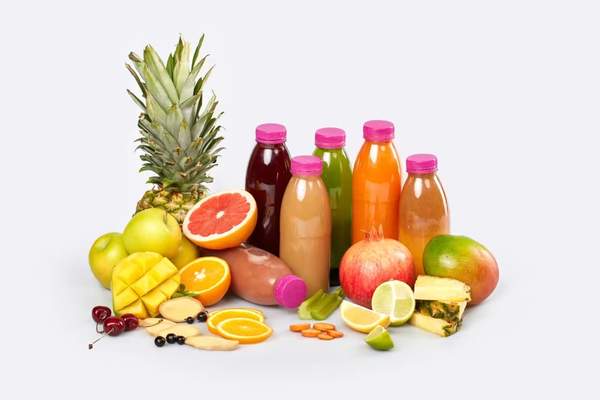 Фреш ананас+груша+апельсин+яблуко (350мл), яблуко+ананас (350мл), яблуко+апельсин+морква+імбир (350мл), селера+яблуко+лимон (350мл), грейпфрут+апельсин+ківі (350мл), ківі+зелене яблуко+м'ята (350г)
