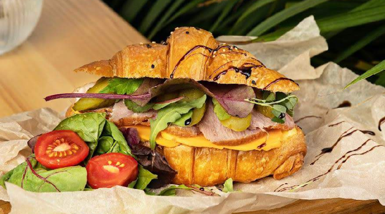 Хрусткий круасан із ніжною домашньою шинкою, сиром чеддер, маринованим огірком і салатом айсберг. Фірмовий соус підкреслює смак і додає затишної гармонії.