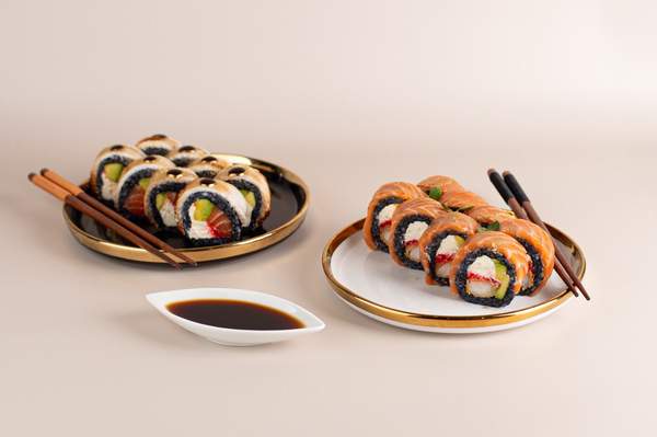 Філадельфія лососьКаліфорнія з крабом та авокадоКаліфорнія Unagi SalmonКаліфорнія креветка та манго