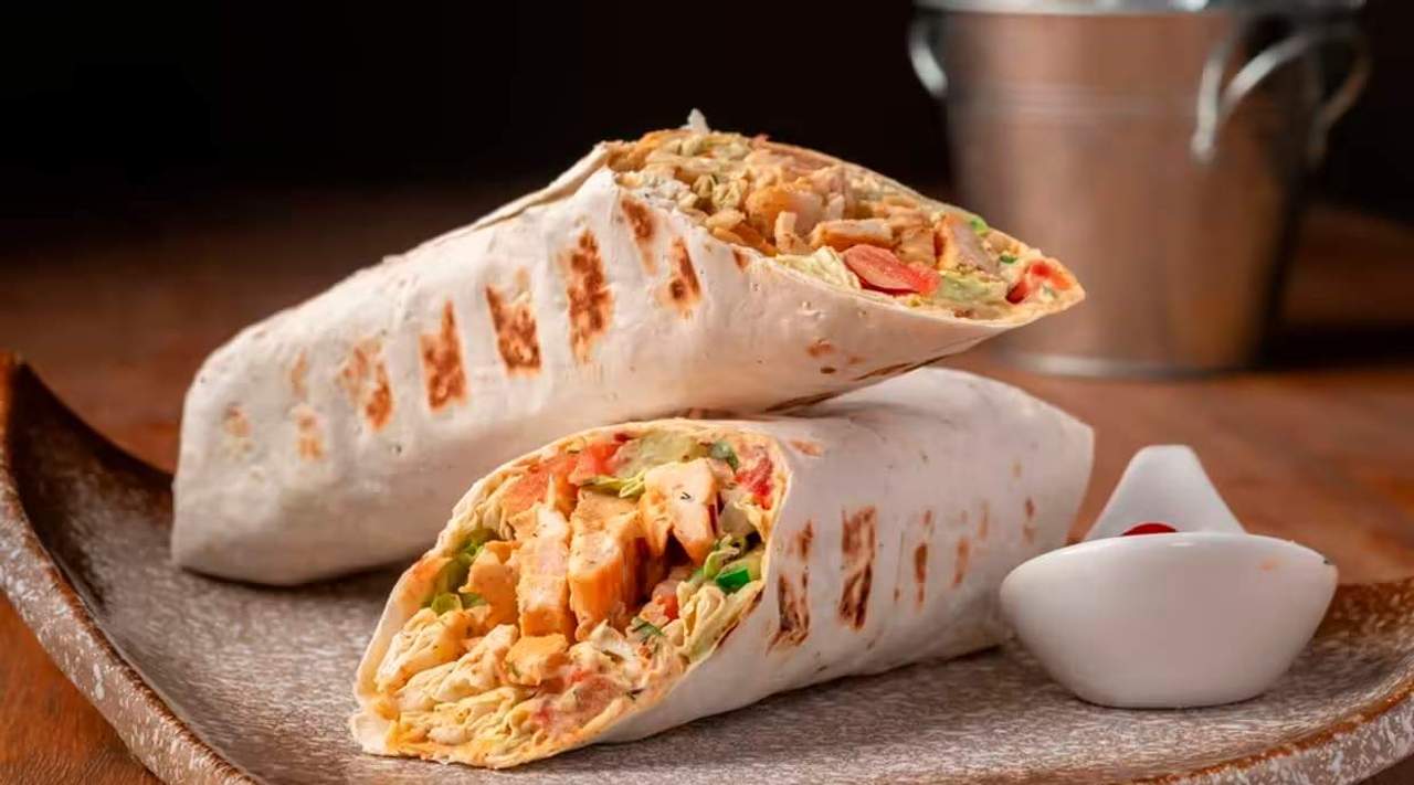 Лаваш, смажений бекон, ніжне куряче філе, сир пряжена Сицилія, фірмовий безлактозний соус і гострий перець чилі.