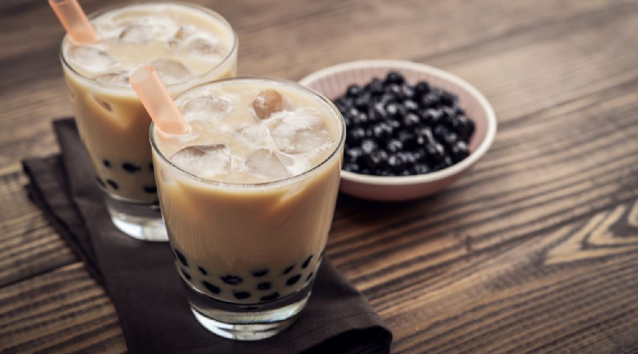 Прохолодний напій на основі зеленого чаю сиропу, з додаванням боби (кульки із соком всередені, що лопаються), тапіоки або шматочків желе.