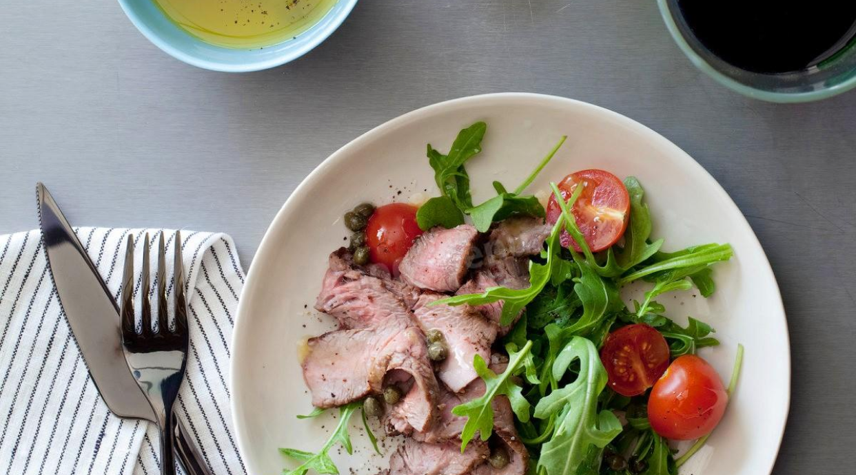 Стейк яловичий з овочами гриль та соусом Винний Порте