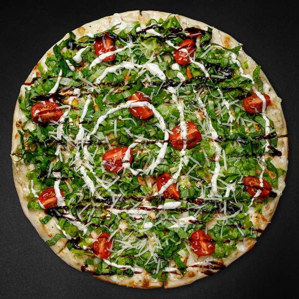 Հավի ֆիլե, մոցարելա, չերրի, կեսար սոուս, հազարի տերևներ, պարմեզան (36 սմ բարակ խմոր), (8 կտոր)