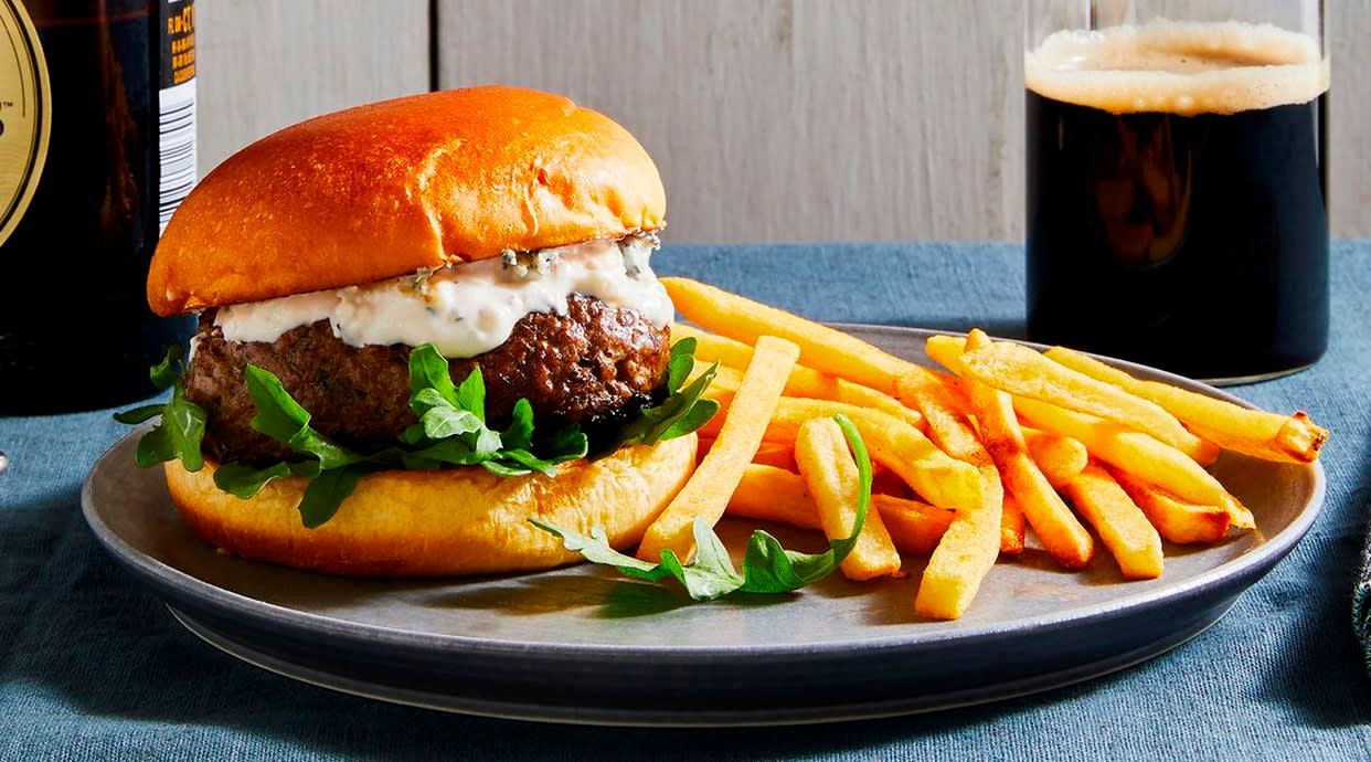 100% мляно телешко, карамелизиран лук, разтопен английски чедър, сос Meat, масло, хляб бриош.