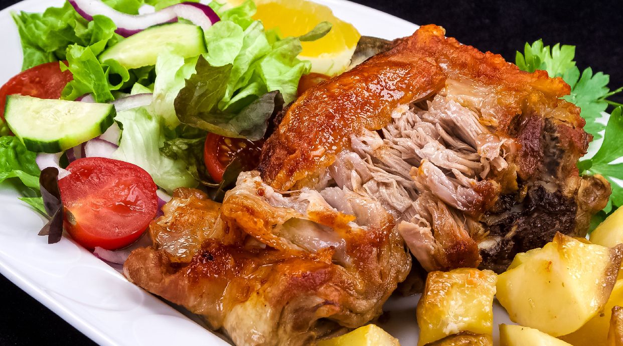 Свински джолан с грейви сос и запечени картофки 350 гр.