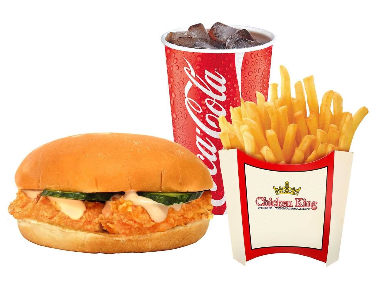 1 бр. чикен кинг бургер, 1 бр. гарнитура, (350 г) и 1 бр. напитка (330 мл)