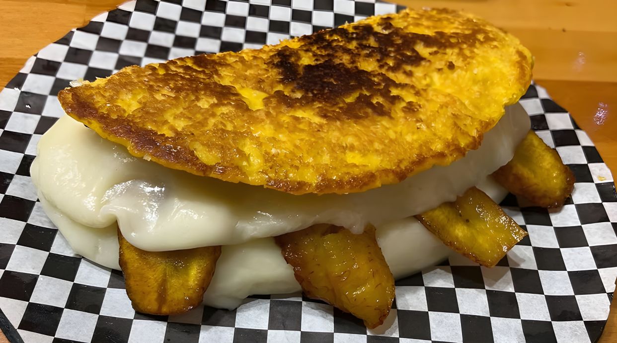 Relleno de alubias negras ternera mechada queso y plátano maduro macho
