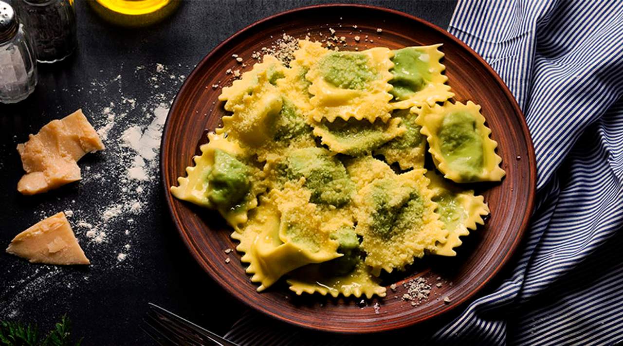 Relleno de espinaca, ricotta y parmesano, con salsa Pomodoro
