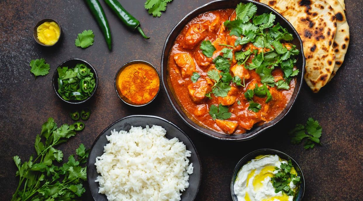 Curry de pollo, tikka con especias preparado al estilo puniabi con nata y yogurt