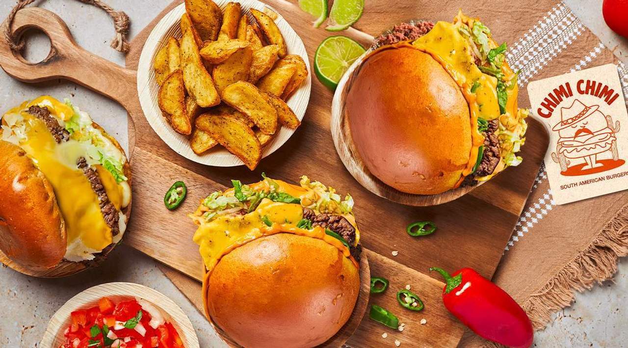 Pan brioche, mayo chimichurri, hamburguesa black angus, doble queso cheddar fundido y lechuga iceberg