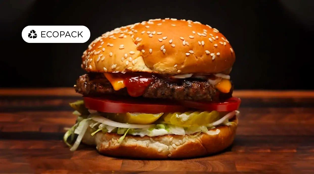 Carne de Pollo Crujiente, Jamón York, Queso, Mayonesa, Lechuga Batavia "Florette", Cebolla Pochada, Tomate Natural en Rodajas, Bacon a la Plancha y Kétchup + Complemento