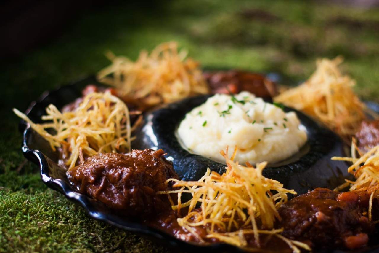 Ccompañado de puré de patata y aceite de pimentón