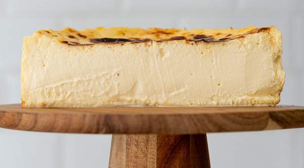 Tarta de queso tradicional hecha de forma artesanal de principio a fin. Elaborada al horno con centro cremoso, sin gluten y cuidadosamente pasteurizada. Tamaño para dos personas (aproximadamente 300gr).