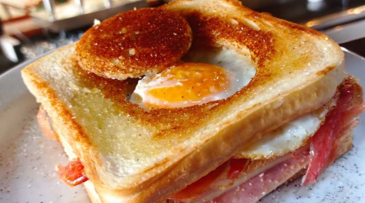 Beicon, edam y huevo frito