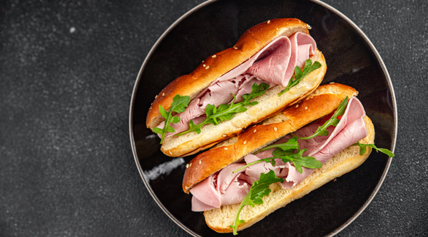 Lechuga, tomate, bacon, jamón York, queso y cebolla caramelizada