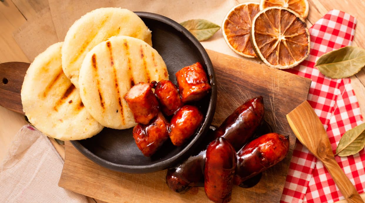 Crujiente masa de maíz blanco precocido rellena de carne deshilachada y queso venezolano