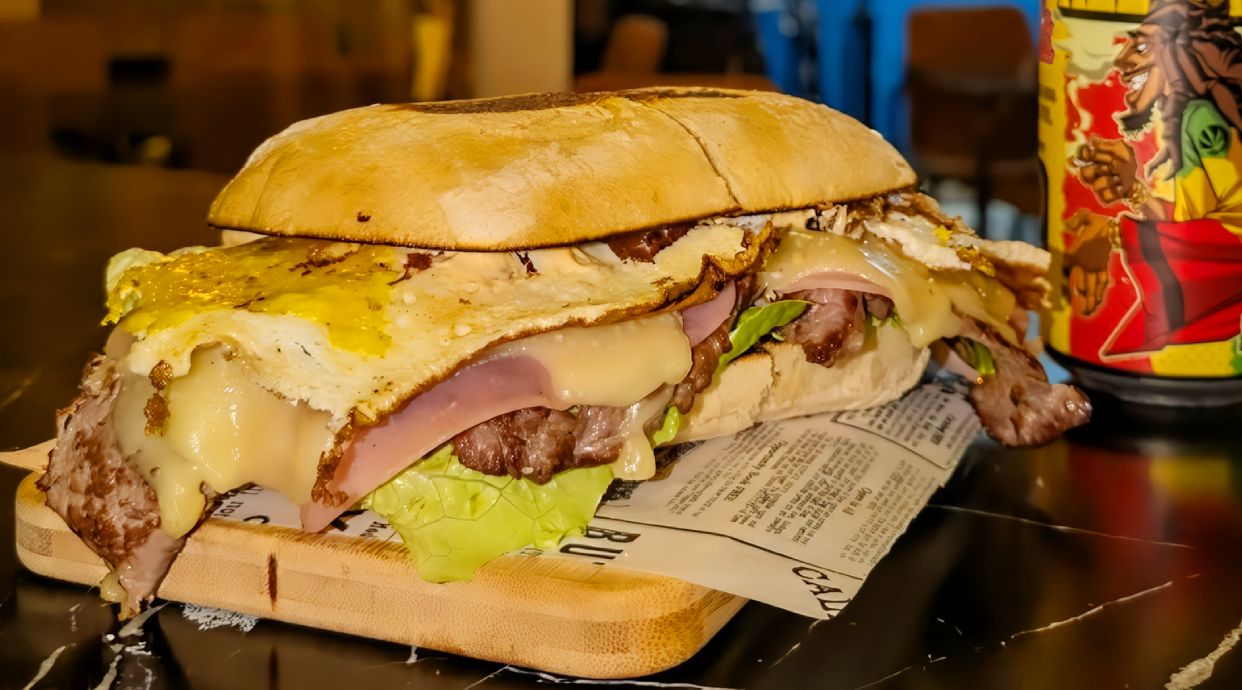 Pan artesanal, mayo chimichurri al sur, corte de ternera (180 g.), queso tybo, jamón cocido, lechuga, tomate y huevo frito a la plancha. El clásico argentino, auténtico y reconfortante. Con patatas!!