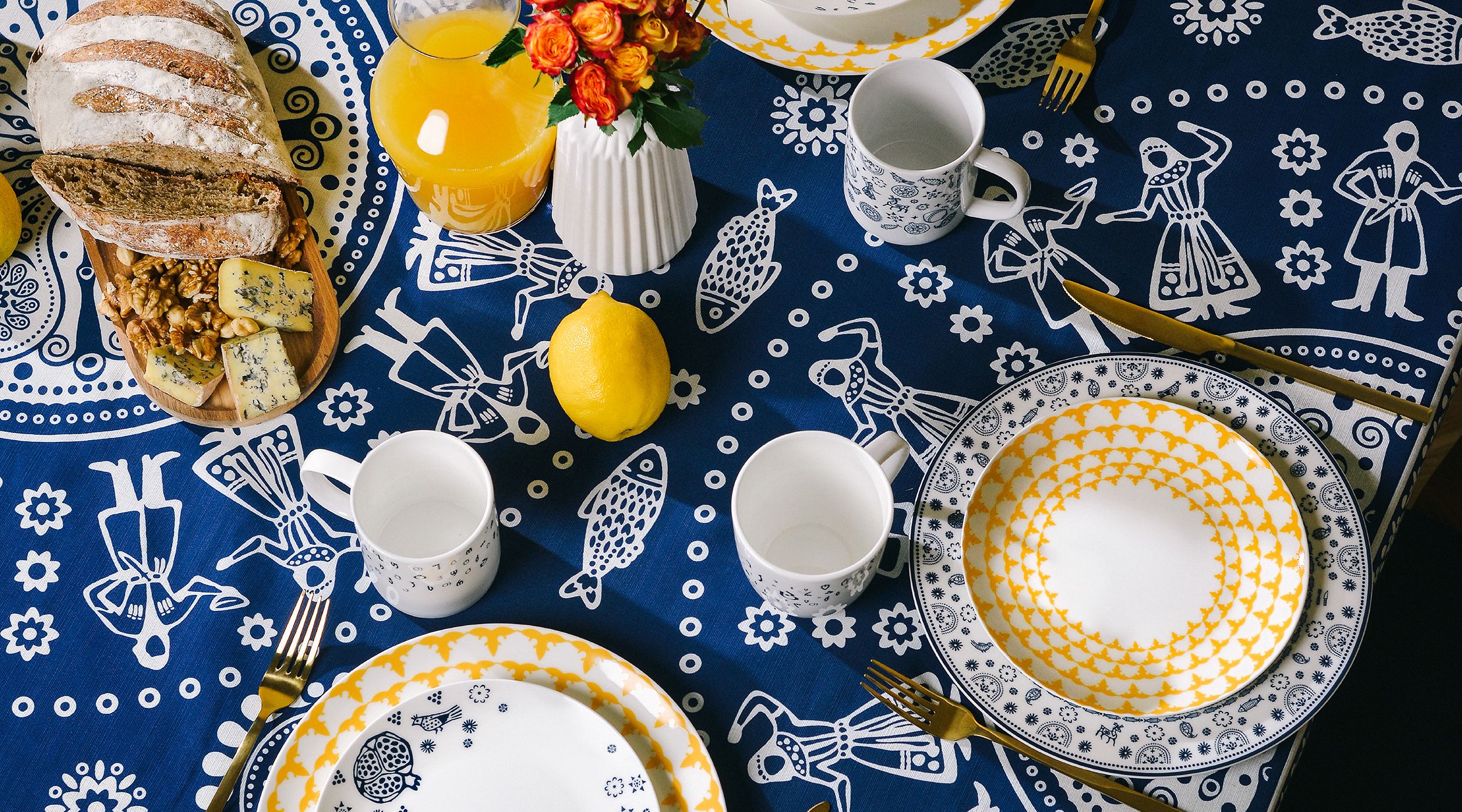 სუფრა - ღვინო 140x140სმ ლურჯი ბამბა