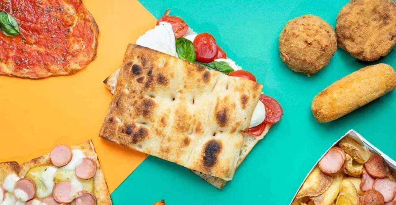 2 Schiacciate a scelta, 2 porzioni di patatine, 1 schiacciata dolce e 2 bibite a scelta