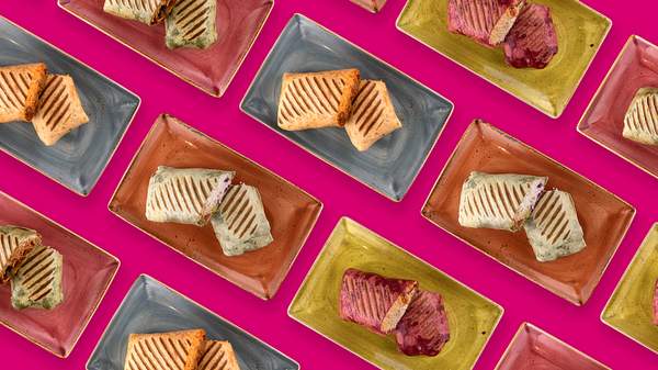 White tortilla con croccanti falafel, cheddar e scamorza filante, cipolla caramellata, insalata, riso e salsa carolina.