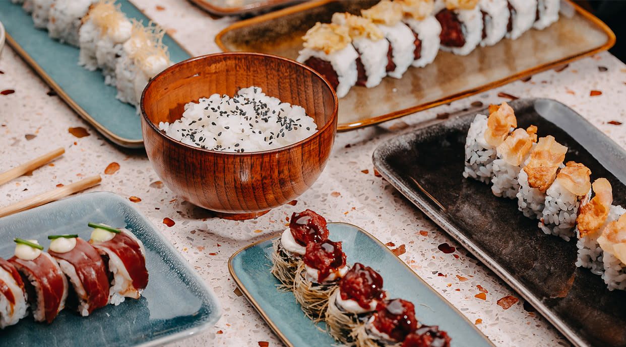 Hosomaki di australian wagyu, pasta kataifi, Philadelphia e salsa teriyaki