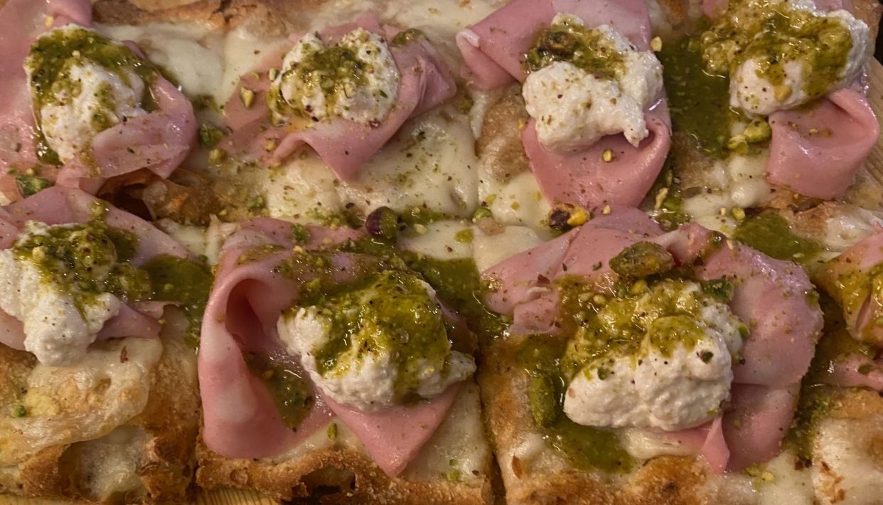 Mozzarella, pesto di pistacchio, stracciatella di bufala , mortadella al pistacchio