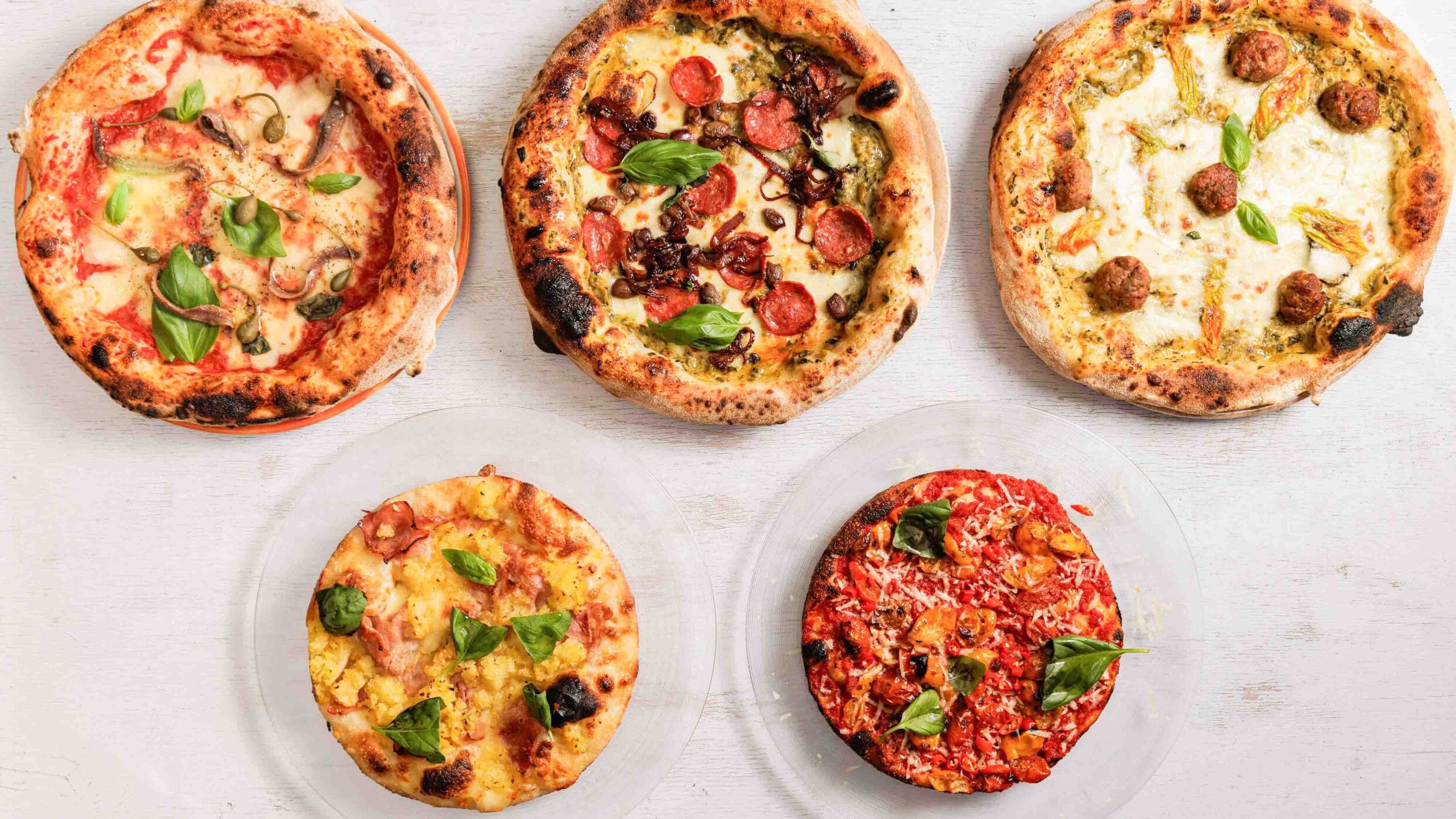 Pomodoro Mutti, mozzarella fiordilatte Caseificio Pugliese, spianata piccante Fiorucci, basilico fresco e olio extravergine di oliva